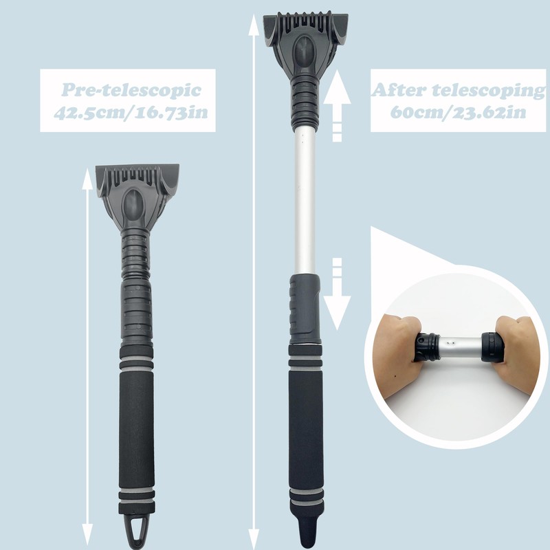 - Teleskopierbar:eiskratzer auto Vor dem Ausziehen misst es 41 cm, nach dem Ausziehen 56 cm; eignet sich nicht nur zum Reinigen von Fenstern, Windschutzscheiben und Rückspiegeln, sondern kann auch bis zum Dach, zur Motorhaube und anderen hohen Stellen ausgezogen werden