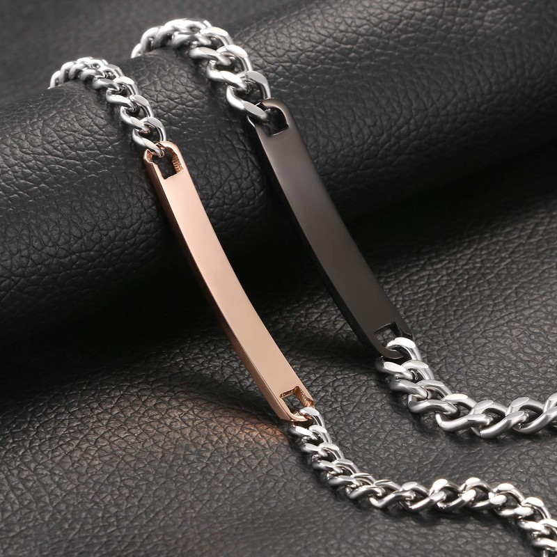 OIDEA Couple Bracelet Stainless Steel Curb Chain Bracelet with Engraving, Gold Rose Gold Silver Bangle Couple Bangle Partner Bracelets Jewellery Gift for Lovers Women Men Couples Valentine's Day, 16