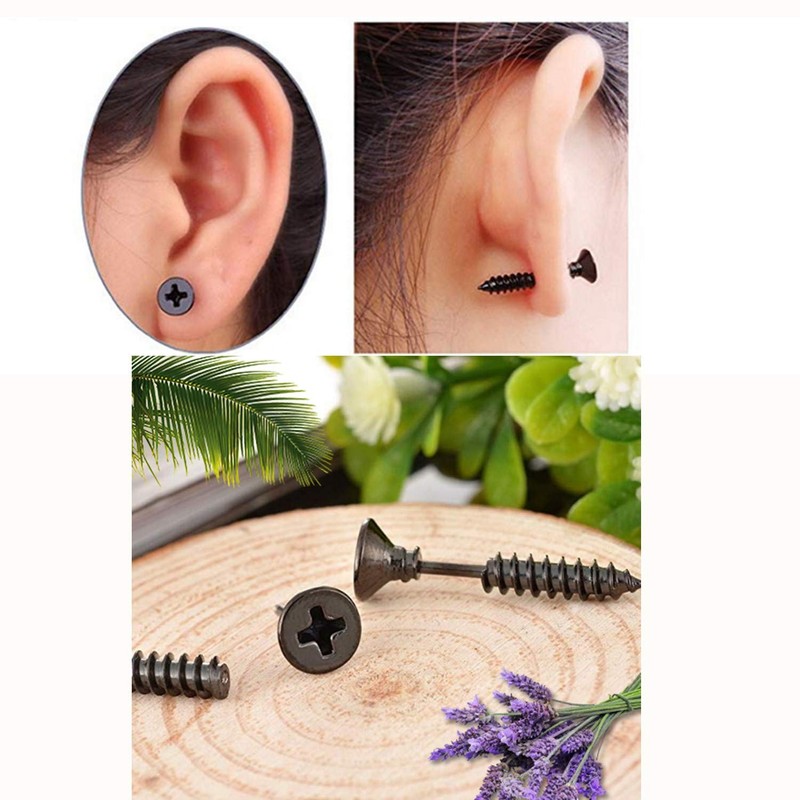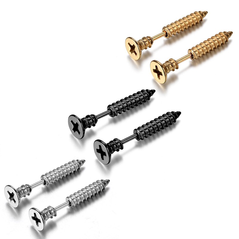 - 3 pairs of stud earrings with screw design, modern and unique.