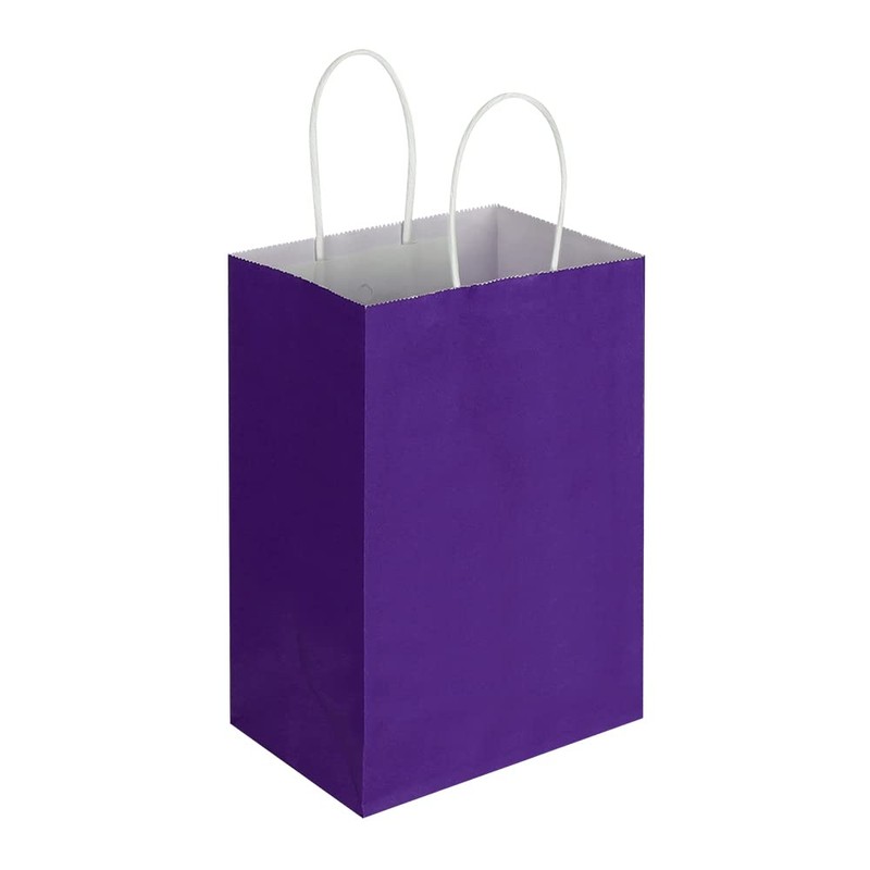 Oikss 100 Pack 5.25x3.25x8.25 Inch Small Purple Kraft Paper Bags with Handles Bulk for Birthday Wedding Party Favors Grocery Retail Shopping Business Goody Craft Gift Bags Cub Sacks (100pcs Count)