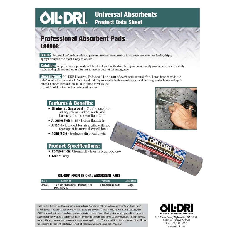 Oil Dri L90908 15" W x 60" L Universal Heavy Weight Bonded Perforated Roll, 1-Roll