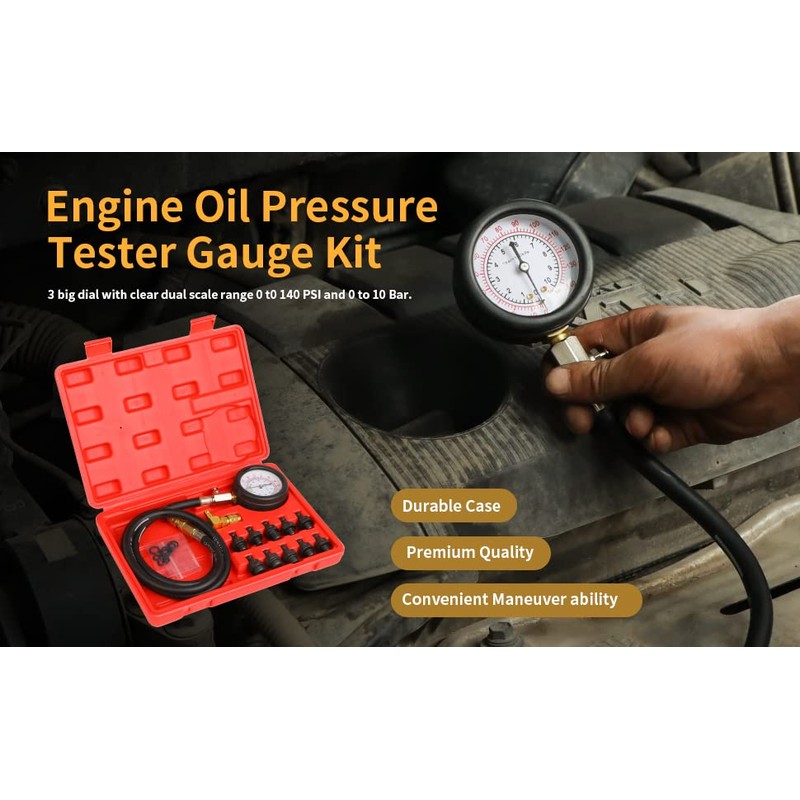 Oil Pressure Tester Tool, Oil Pressure Gauge kit, 0-140 PSI PressureTestDiagnostic Tools, Engine Oil Pressure Tester Tool kit, for car Truck