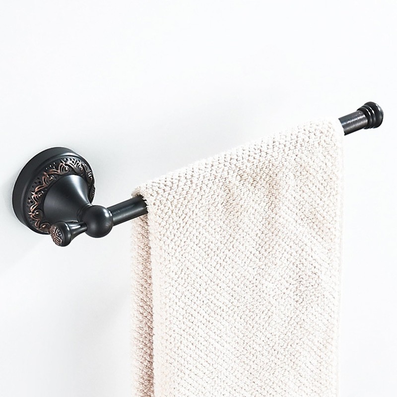 Oil Rubble Bronze Brass Bath Towel Holder Towel Rack, Wall Mounted Black Bathroom Hardware Accessories, Pattern Carving Design