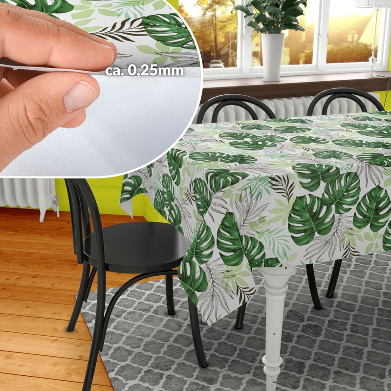 Oilcloth Tablecloth Washable Garden Tablecloth Oilcloth Rectangular Round Oval 140 x 180 cm Cut Edge Palm Leaves Green