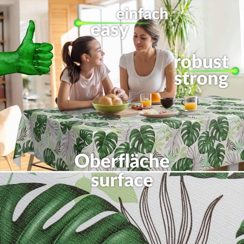 - For any occasion: this washable tablecloth is ideal for celebrations, parties, everyday use in the kitchen, dining room, garden (as a garden tablecloth), the balcony or on the camping - also protect your table from stains and scratches.