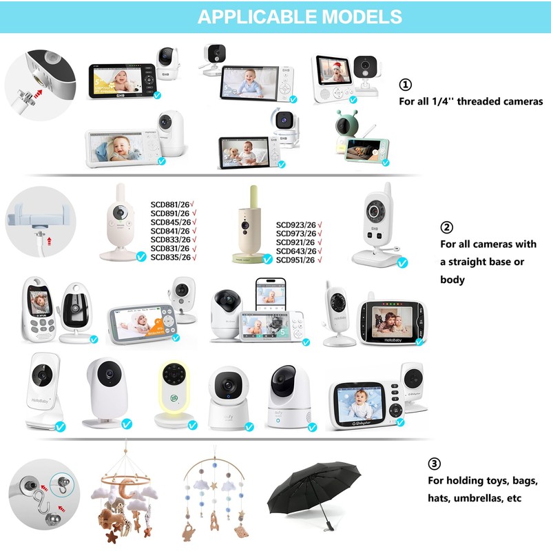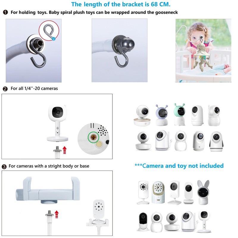 - UNIVERSAL COMPATIBILITY: Designed to securely mount most baby cameras to your crib, providing optimal viewing angles for monitoring your little one (baby camera and toy not included)