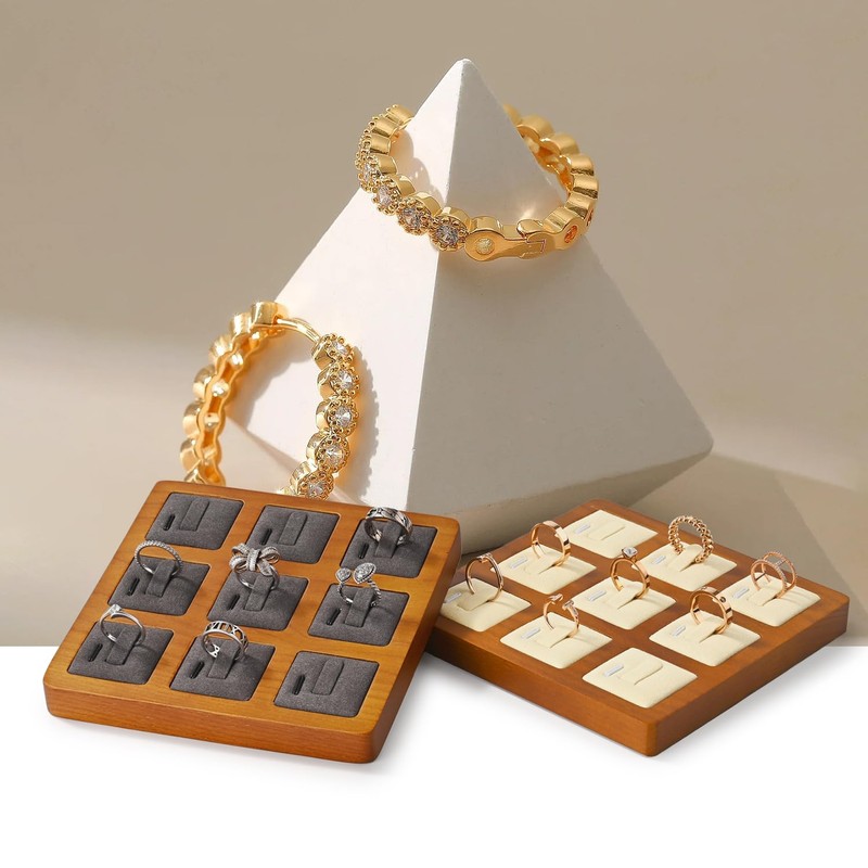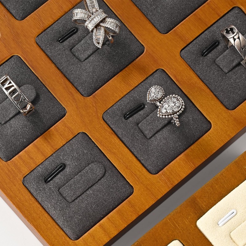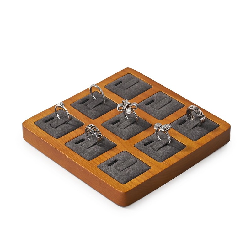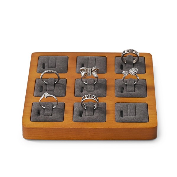 Oirlv 指輪 トレイ 木製 リングトレイ 9枚 ディスプレイ 収納 高級 おしゃれ ジュエリートレイ SM02502 (ダークグレー)