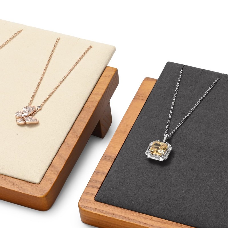- ★The creamy-white microfiber helps you see products clearly in contrast against bright colored jewelry.The jewelry stand have a slight angle,display you precious necklace more appealing.
