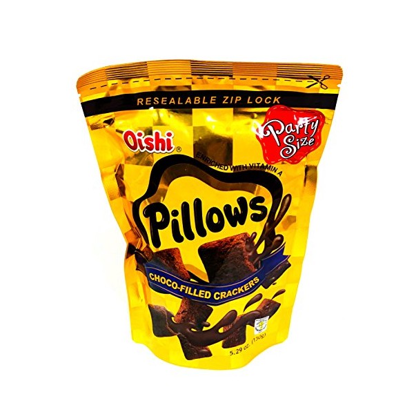 - Oishi Pillows Choco-filled Crackers Party Size, 5.29 oz, 3 packs