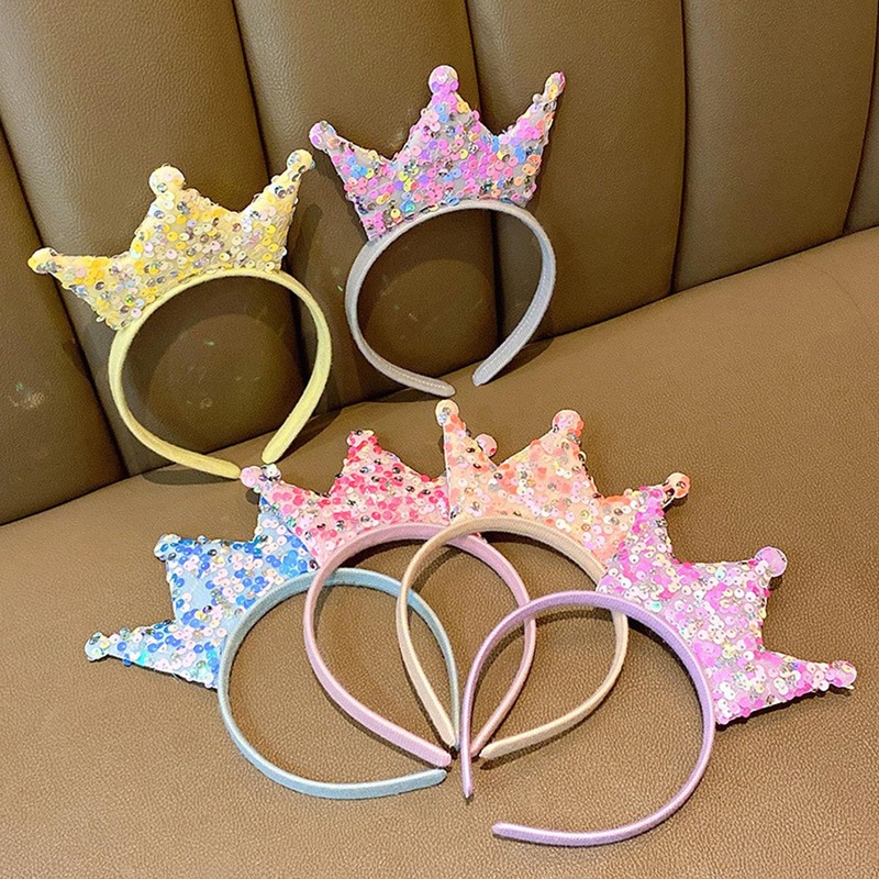 OIUUBBII Sparkly Crown Headband for Women Girls - Glitter Sequins Princess Crown Hairband for Birthday PartyWedding Christmas Costume (Pink)
