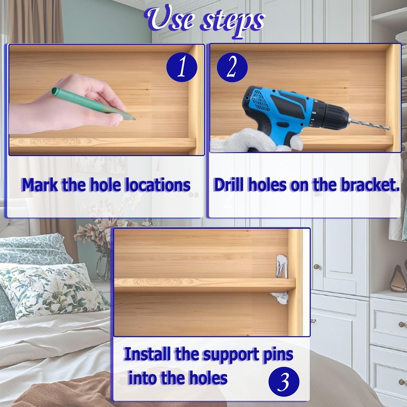 - Application: These self-locking shelf support pegs require no screws and are suitable for DIY projects such as bookcases, medicine cabinets, kitchen cabinets, wardrobes, dressers, furniture cabinets, and more