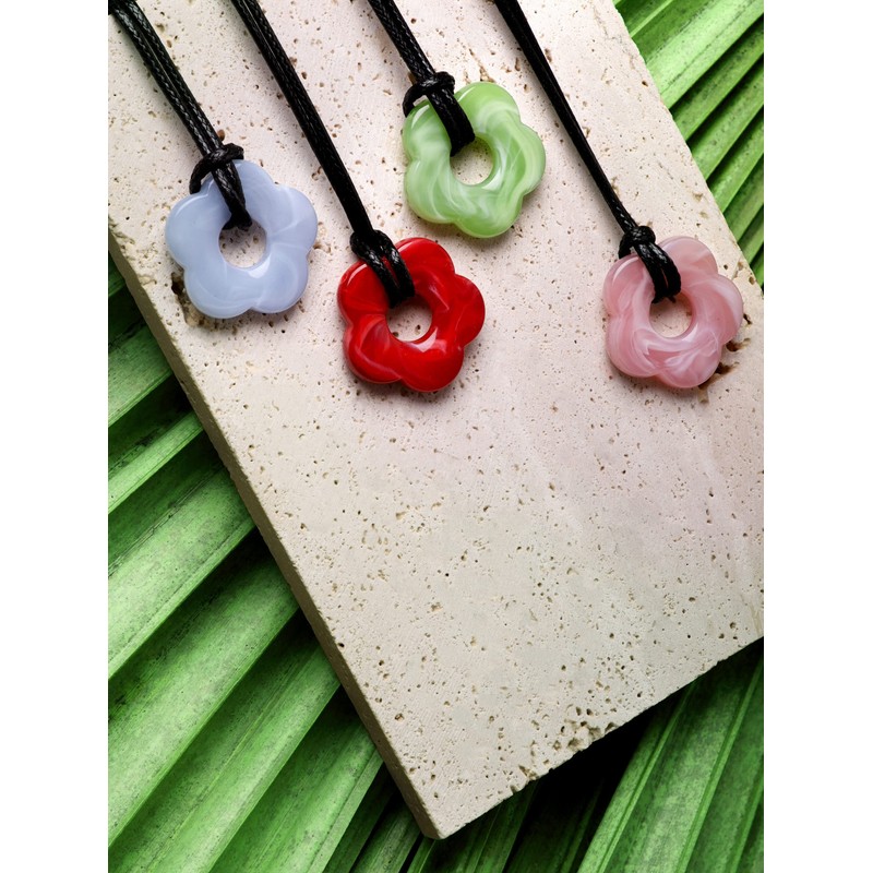 - MATERIALS & DETAILS: Our Cute Flower Choker Necklace is made with a 0.98" plastic pendant, 19.6" waxed black cord with 2" extender. Available in 4 colours: red, baby blue, blush pink, lime green