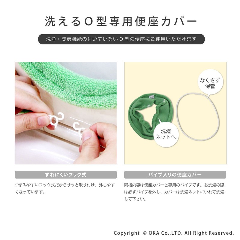 OKA Etoffe Toilet Seat Cover, For O-Shaped Seats, Antibacterial, Odor Resistant, Green