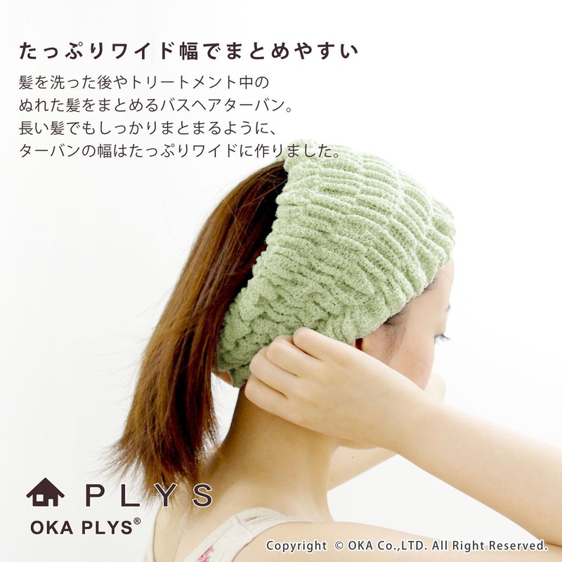 OKA PLYS base epi hair turban, easy to dry bath hair turban, green, one size fits most
