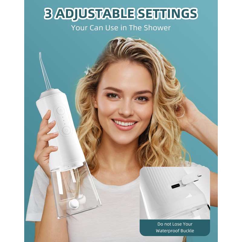 Water Flosser, Water Dental Flosser Pick for Teeth, 300ML IPX7 Waterproof Oral Irrigator, 3 Modes 4 Replaceable Jet Tips, Professional Flossing Cleaning Picks for Home Travel Gums (White)