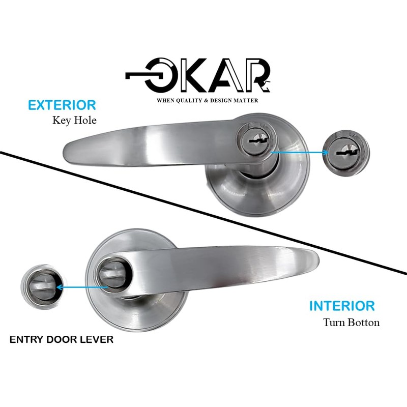 OKAR Satin Nickel Door Handle Entry Privacy Bath Bedroom and Closet Door Lever, Lock with Key Locksets,Reversible Flat Lever with Round Rosette.