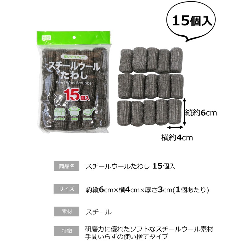Okazaki Steel Wool Scrubber Scrubber Scourer, Pack of 15