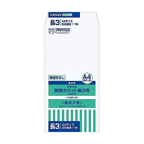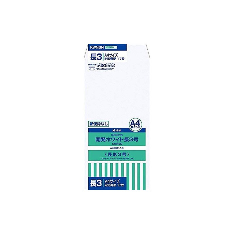 Okina KWN3N Development White Envelopes, Length No. 3, No Frame, 17 Sheets