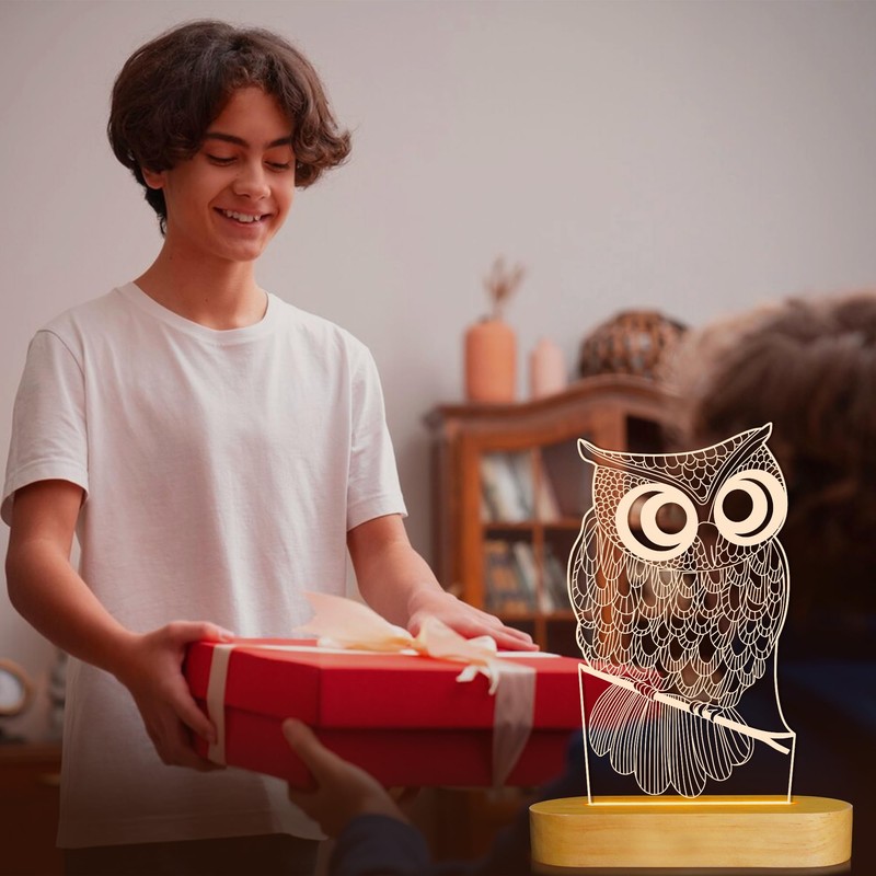 Introducing our owl night light LED illusion lamp, a charming addition to your home decor! This lamp features an adorable owl design that will add a touch of whimsy to any bedroom or living space. With its soft, warm white glow, it creates a cozy ambience perfect for reading or relaxing before bedtime. This owl lamp is not only a functional light, but also a stylish decorative piece. It is a wonderful gift for birthdays, Christmas or any special occasion and brings joy to owl friends of all ages. Whether placed on a bedside table, desk or shelf, it adds personality to any room. Easy to set up and use, our Owl Night Light will delight children and adults alike. Bring this adorable owl lamp home and illuminate your room with its enchanting light!