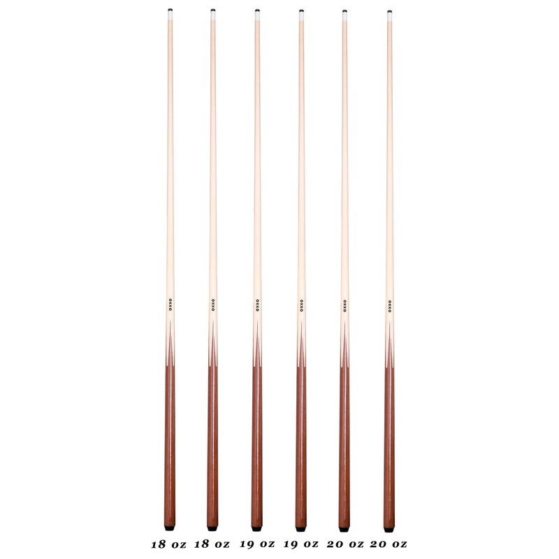 - A set of 6 cues: 2 cues 18 oz, 2 cues 19 oz and 2 cues 20 oz. Great for commercial and home use. Standard length: 57" (145 cm)
