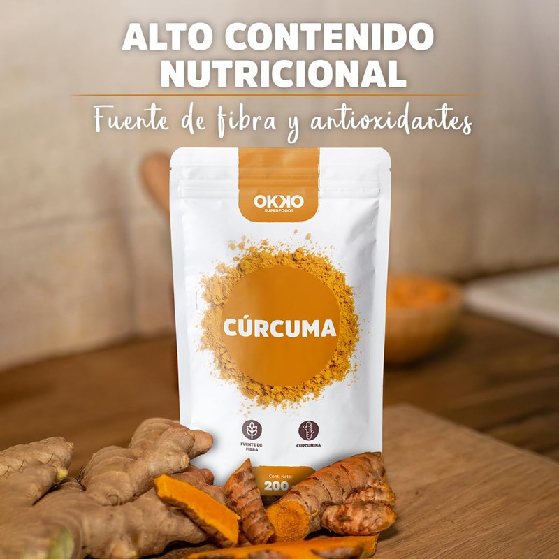 - SABOR A NOTAS CÍTRICAS Y JENGIBRE | Añade un toque de sabor único a tus platillos con la cúrcuma en polvo OKKO, ideal para sazonar recetas o disfrutar en tu smoothie favorito.