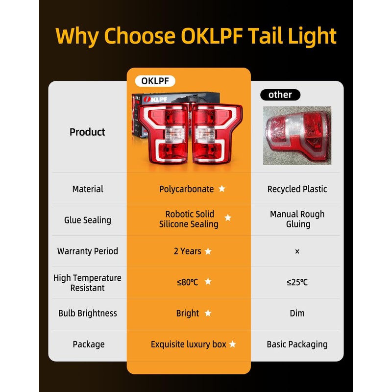 - Easy to install:Oklpf tail lights installation process is simple and convenient.It's direct plug and play saving you valuable time and effort