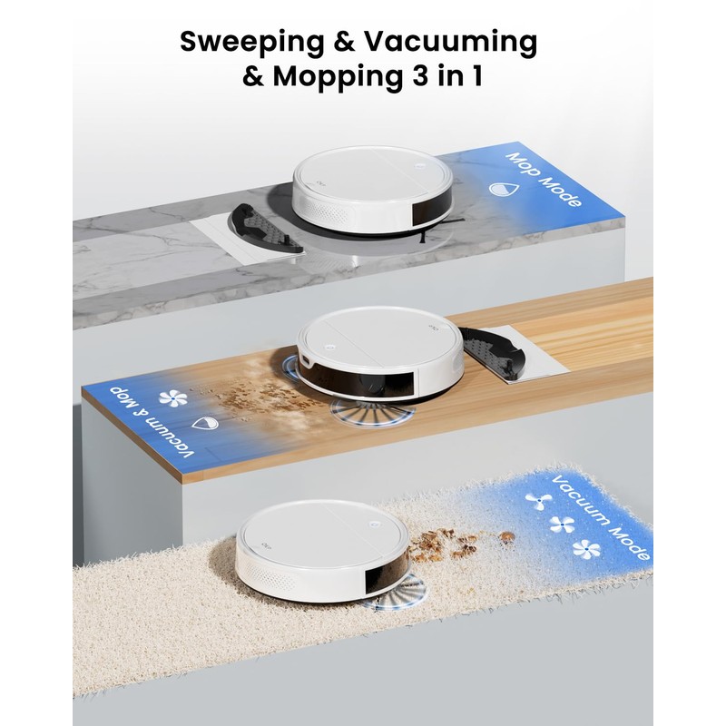 - 3-IN-1 CLEANING: SWEEP, VACUUM & MOP: The K5 Ultra combines sweeping, vacuuming, and mopping in one. Its 6000Pa suction power captures fine dust and pet hair, while the washable mop offers both reusable and disposable options.