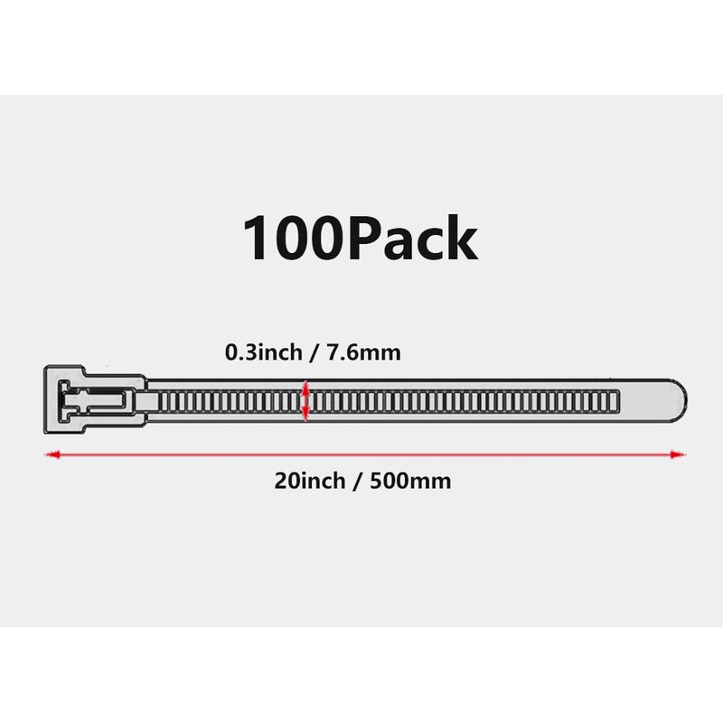 Oksdown Cable Ties Resealable Black 500mm × 7.6mm Pack of 100 UV Resistant Strong Large Nylon Plastic Reusable Set