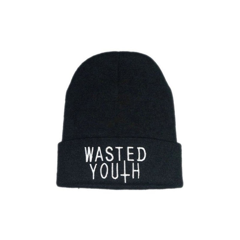 Okstar Wasted Youth Beanie Black Hat Hiphop Knit Beanie Unsex Winter Hat