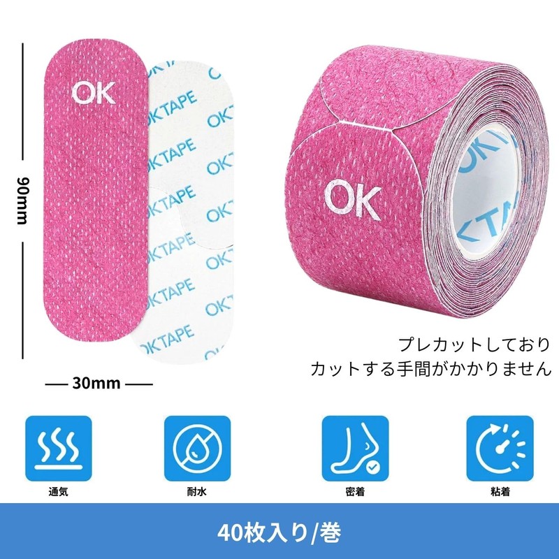 - 製品データ:1カットのサイズ: 30cm*90cm プレカット加工40枚分/1巻(箱) 微細な通気孔デザインのメッシュ構造×耐水粘着剤で、汗にも水にも負けないフィット感!動いても、はがれにく!い。