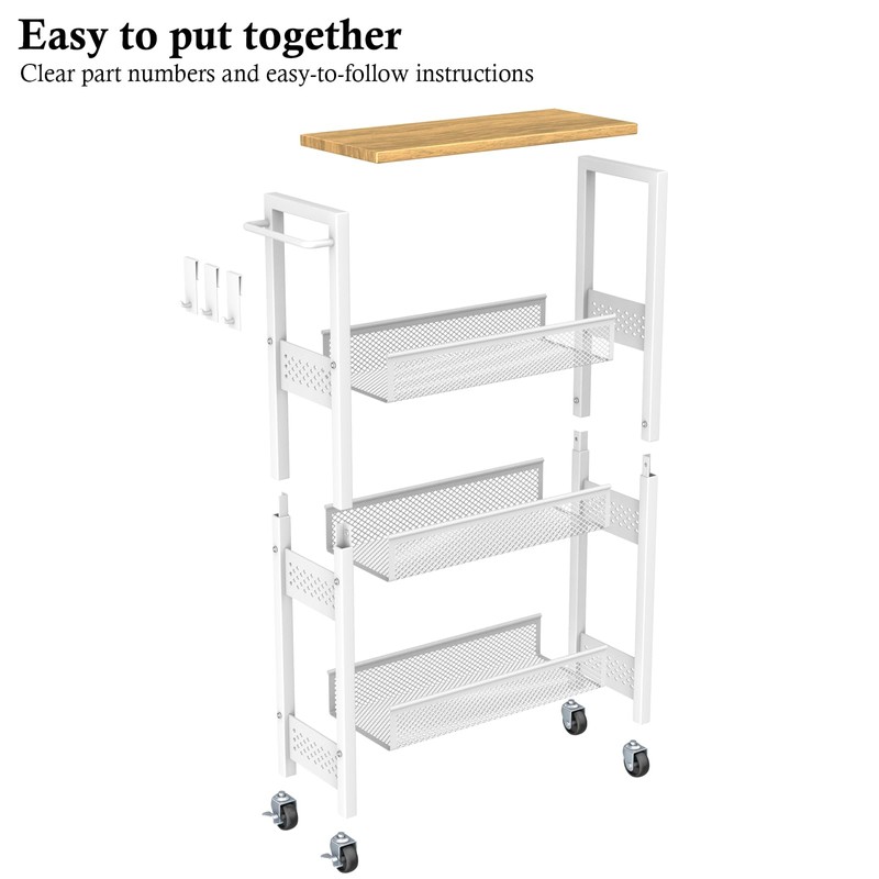 - Durable and Rust-Resistant: Made of premium alloy steel with a powder coating, this slim rolling cart is built to last. The mesh design of the shelf prevents water accumulation, ensuring this laundry room storage cart stays dry even in wet laundry and bathroom areas.