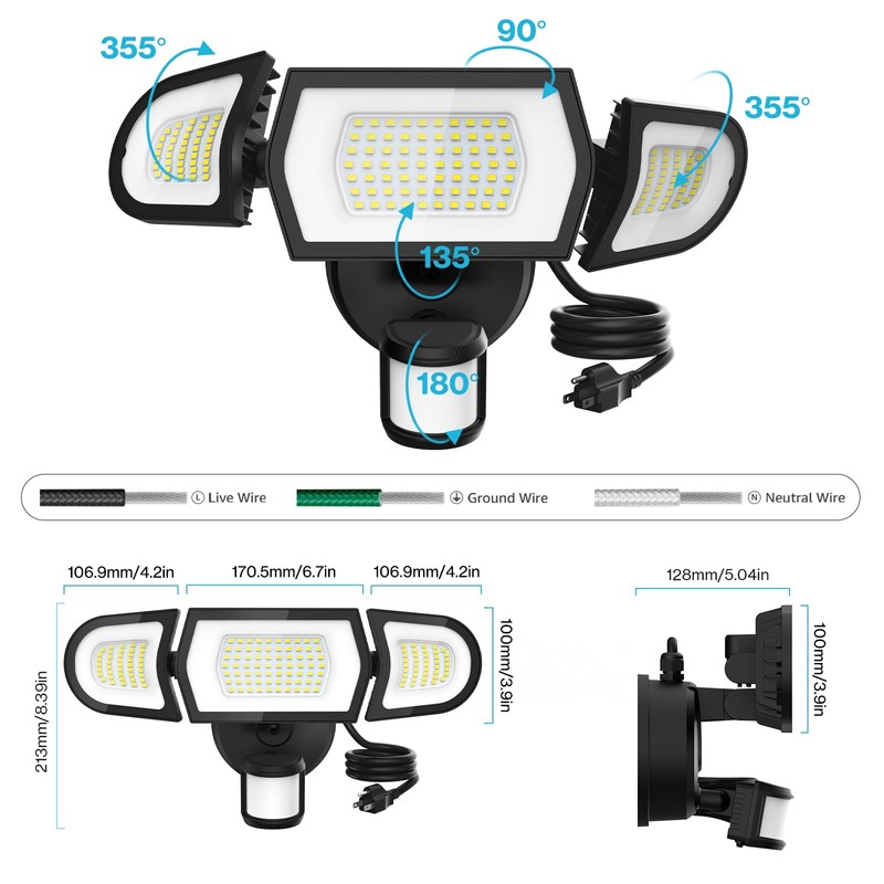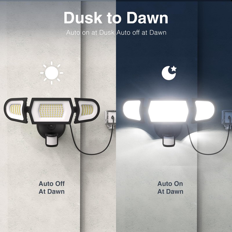 - Upgrated Motion Sensor: Security motion light can be triggered by the moving human, cars or animals up to 72FT sensing range at 180° detection angle. Safeguard and brighten your home.
