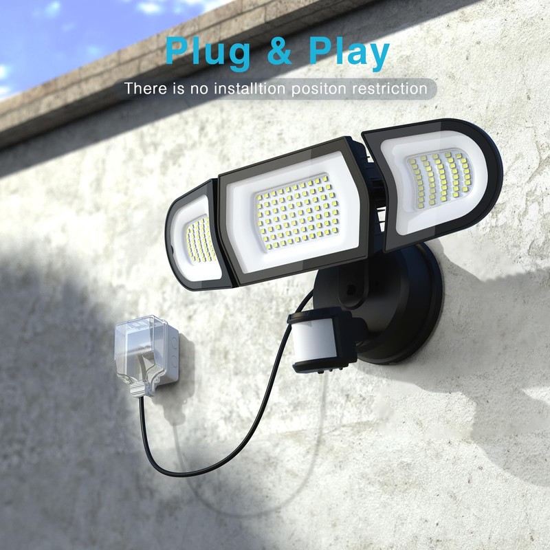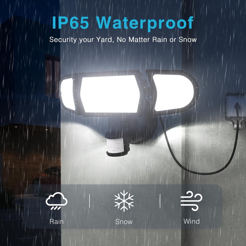 - IP65 Waterproof: Plug in security light performs well in outdoor environment, like garage, deck, barn, backyard, porch, and front of house. Floodlight works normally even in rainy or snowy day.
