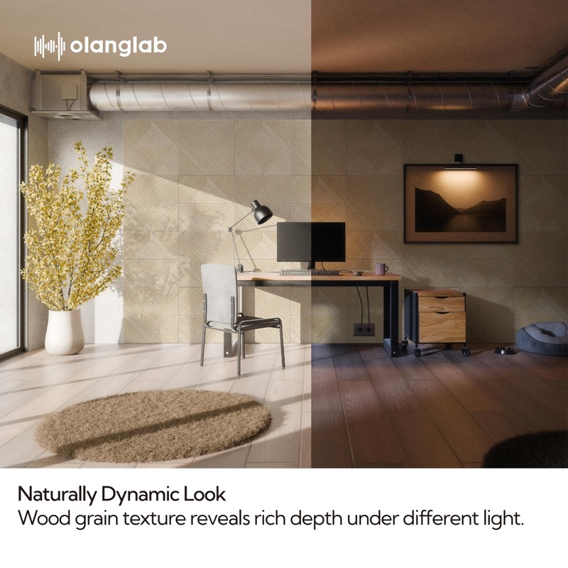 Olanglab Olanglab Self-adhesive Acoustic Wall Panels 4 Pack, 47.2 x 23.6 per Acoustic Panels Sound Absorbing, Decorative Sound Panels for Home Studio and Office, Light Ash Wood Pattern, Style E