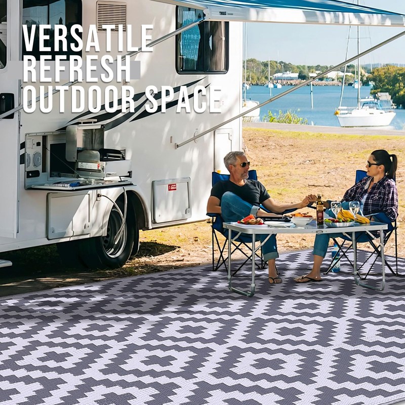 - Reversible & Versatile: Featuring a modern geometric pattern on both sides, this reversible patio rug allows you to instantly refresh your patio, porch, backyard, deck, RV campsite, or any outdoor area with a quick flip. It's a simple way to switch up your style and adapt to changing seasons.