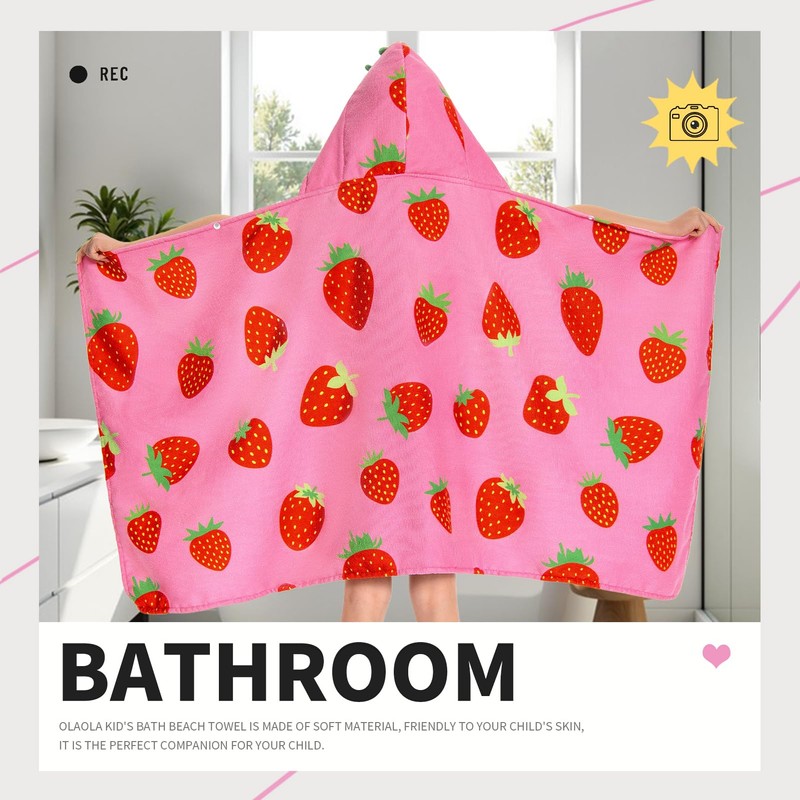 OLAOLA Strawberry Hooded Towel for Kids 3-12 Years, 28" x 53" Soft Thick Absorbent Beach Towels, Toddler Bath Towel Wrap Swim Pool Towels Poncho for Boys Girls