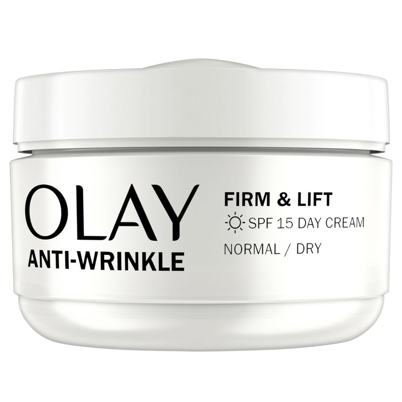 Product DescriptionOlay Anti-Wrinkle Firm & Lift Day Cream helps to visibly reduce fine lines and wrinkles, while protecting against premature signs of aging with SPF15 to combat UVA + UVB rays. It provides you with all-day moisture to help boost skin firmness, for skin that appears renewed and re-energised with improved elasticity, for noticeable results week by week. Designed with SKIN RENEWAL COMPLEX, including Vitamin B3, it activates surface cell renewal to improve skin's smoothness. The formula is fast absorbing and non-greasy, for a delightful feel on skin.IngredientsAqua, Glycerin, Ethylhexyl Salicylate, Niacinamide, Butyl Methoxydibenzoylmethane, Dimethicone, Zea Mays Starch, Isopropyl Isostearate, Phenylbenzimidazole Sulfonic Acid, Octocrylene, Panthenol, Ethylhexylglycerin, Caprylyl Glycol, Dimethiconol, Cetearyl Glucoside, Cetearyl Alcohol, Laureth-7, Stearic Acid, Palmitic Acid, Stearyl Alcohol, Cetyl Alcohol, Behenyl Alcohol, Arachidyl Alcohol, Disodium EDTA, Polyacrylamide, Carbomer, Aminomethyl Propanol, PEG-100 Stearate, Ammonium Polyacrylate, Titanium Dioxide, C13-14 Alkane, 1.2-Hexanediol, Phenoxyethanol, Parfum, Hexyl Cinnamal, Linalool, Hydroxycitronellal, Limonene, Alpha-Isomethyl Ionone, Citronellol, Geraniol, Benzyl Alcohol, Benzyl BenzoateDirectionsSTORE COOL PLACESafety WarningKEEP AWAY FROM KIDSManufacturer Contact InformationProcter & Gamble UK, Weybridge, Surrey, KT13 0XP