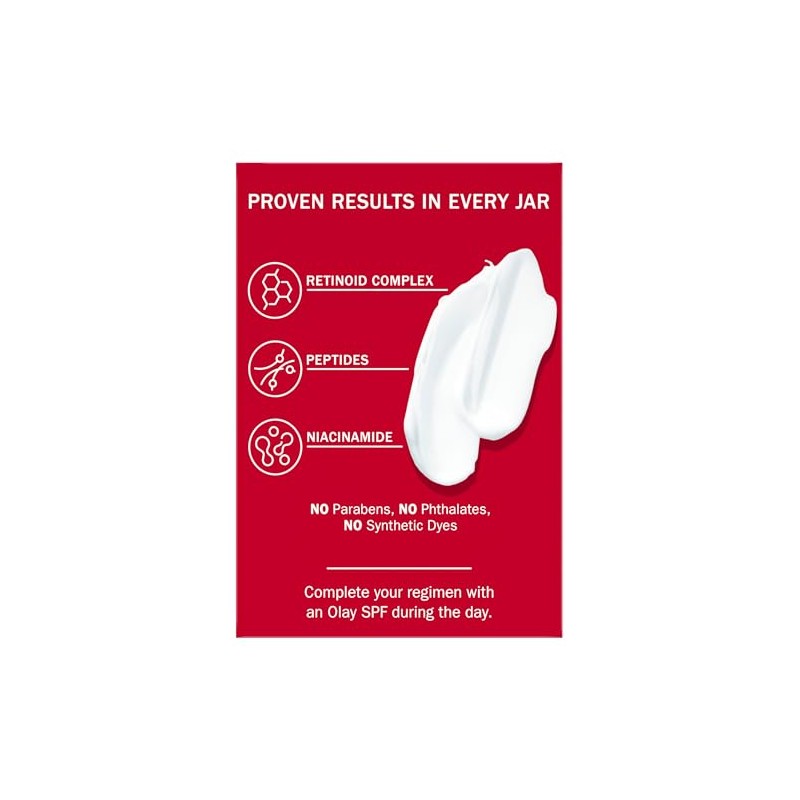 Olay Olay Retinol Face Moisturizer, 24 MAX Anti-Aging Night Cream for Women, Fragrance-Free, Non Greasy - Anti-Wrinkle, Smooth Fine Lines, Tightening, Hydrating Skin Care - Peptides, Glycerin, 1.7 Oz