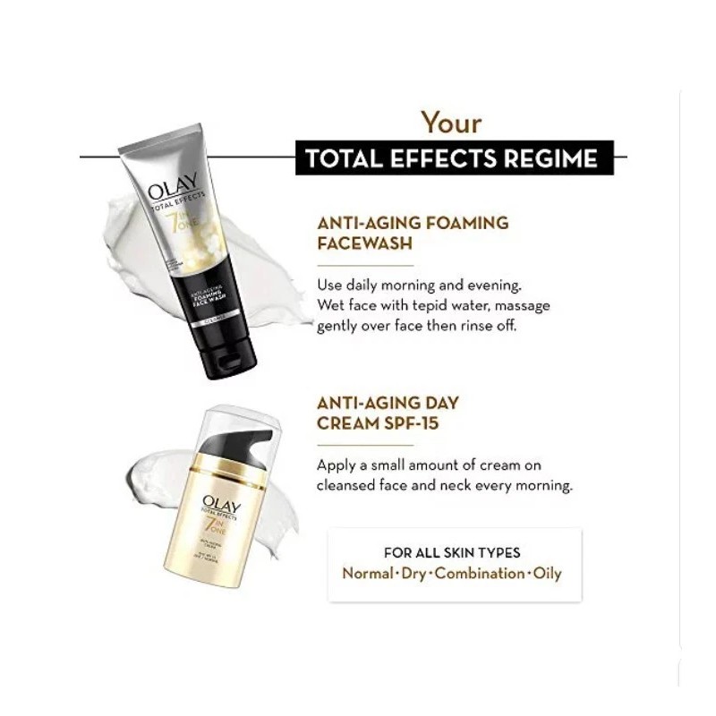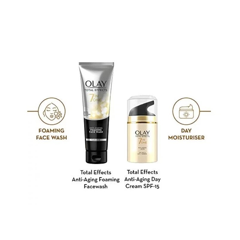 Olay Total Effects 7 in One Skincare Set - Foaming Cleanser & Day Cream Normal SPF-15 Moisturizer - Youthful Radiant Skin