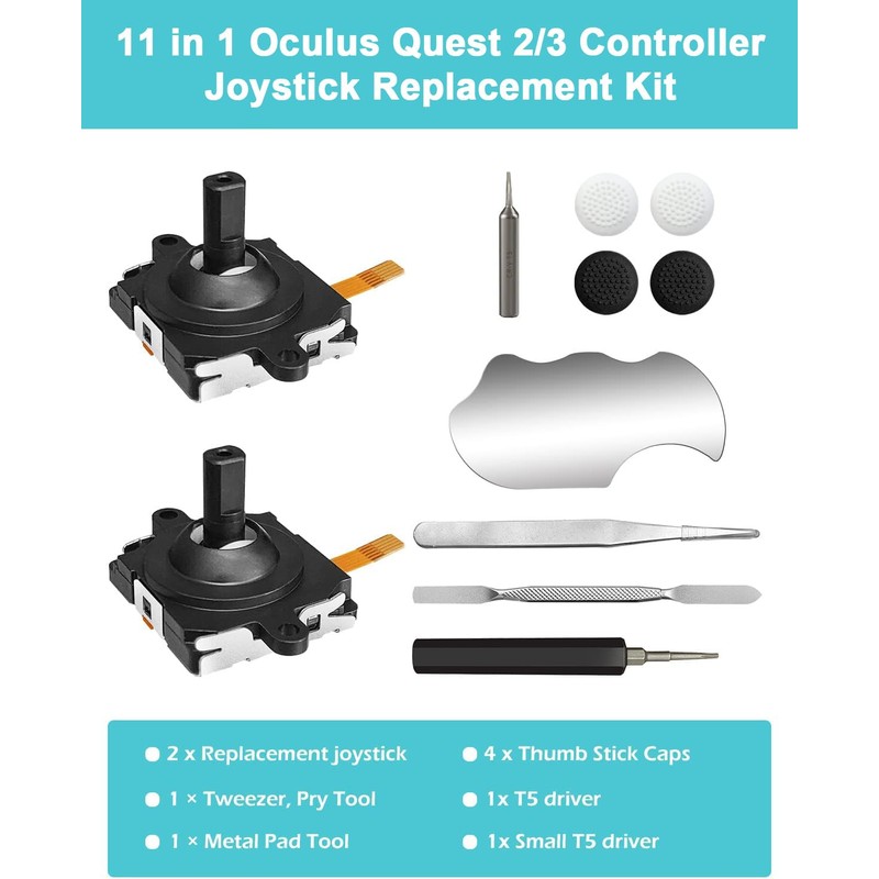Joystick Replacement Kit for Oculus Quest 2/3 Controller, OLCLSS Repair Accessories for Meta Quest 2/3 Controller, Include 2 Joysticks, T5 Screwdriver, Tweezer, Pry Tool, 4 Thumbstick Grips