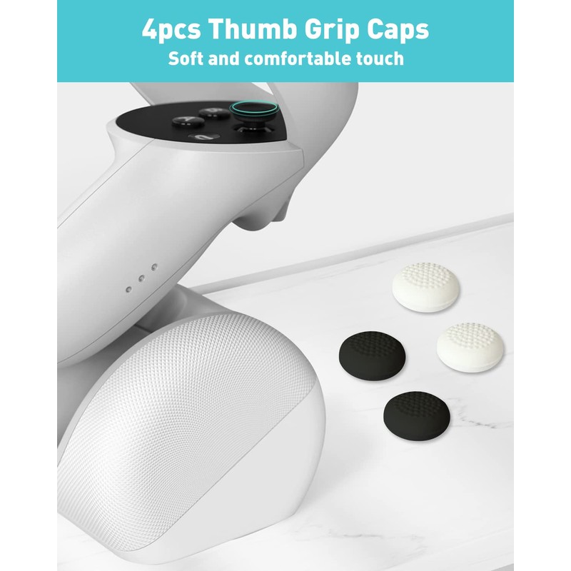 - 2 3D Left/Right Thumb Sticks + 4 Thumbstick CapsPerfect replacement analog joysticks for oculus quest 2 controller, work for left and right oculus controller, repair your worn-out, damaged and drift analog joystick. The thumb stick caps can protect your joystick from scratches, corrosion, spallingor other damage. It made of high-quality silicone material, very safe, soft and comfortable.