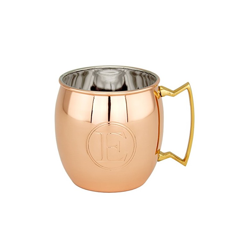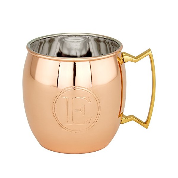 Old Dutch Solid Copper Moscow Mule Mug, Monogram E, 16 oz, Copper