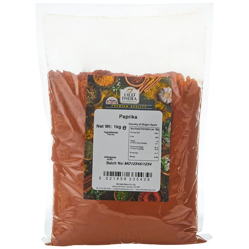 Product DescriptionOver 400 Old India herbs, spices and seasonings now available on Amazon.IngredientsPaprikaBox ContainsEach order comes with 1 x Old India Paprika 1 kg