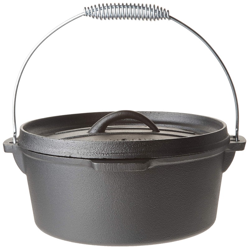This Old Mountain Cast Iron 4 Quart Camp Oven is pre seasoned and ready to use. This camp oven comes complete with a flanged lid to hold hot coals for even cooking and spiral bail handle for ease of lifting. Cast iron retains heat better than any other cooking media and is the cooking choice of many campers and old timey cooks alike. The attractive Old Mountain logo embossed on the lid of this camp oven adds extra style and value.