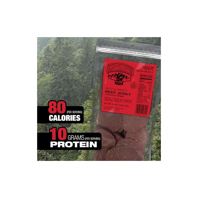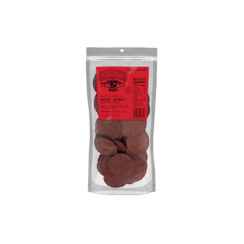 Old Trapper Double Eagle Beef Jerky, Hot & Spicy Flavor, 21-Ounce Package, Natural Wood Smoked Meat Snacks, 10 Grams of Protein and 80 Calories per Serving (Pack of One)