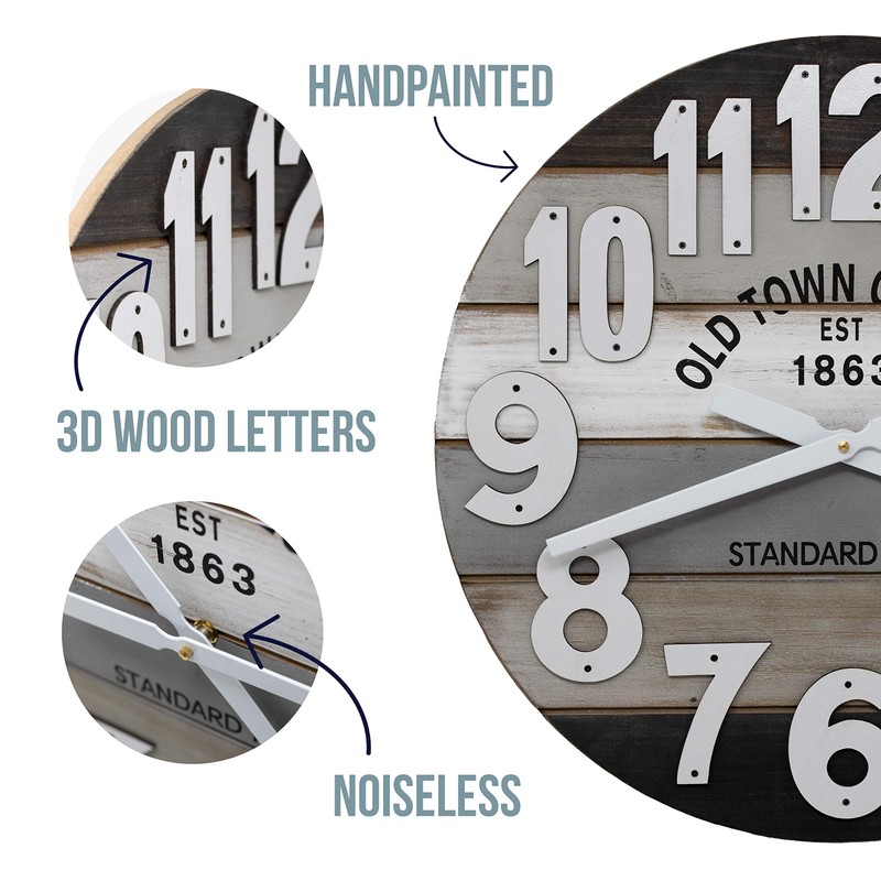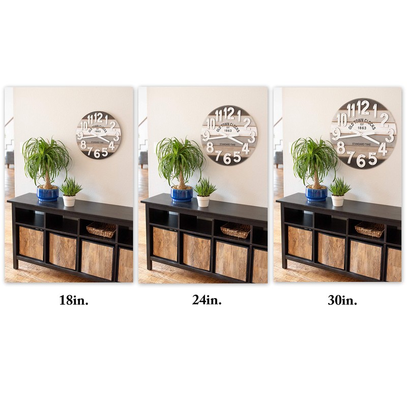 - SIZE MATTERS – our Oldtown large wall clocks has a wide selection of 18”, 24”, 30" diameter and 1” depth, making it a great size for any space.