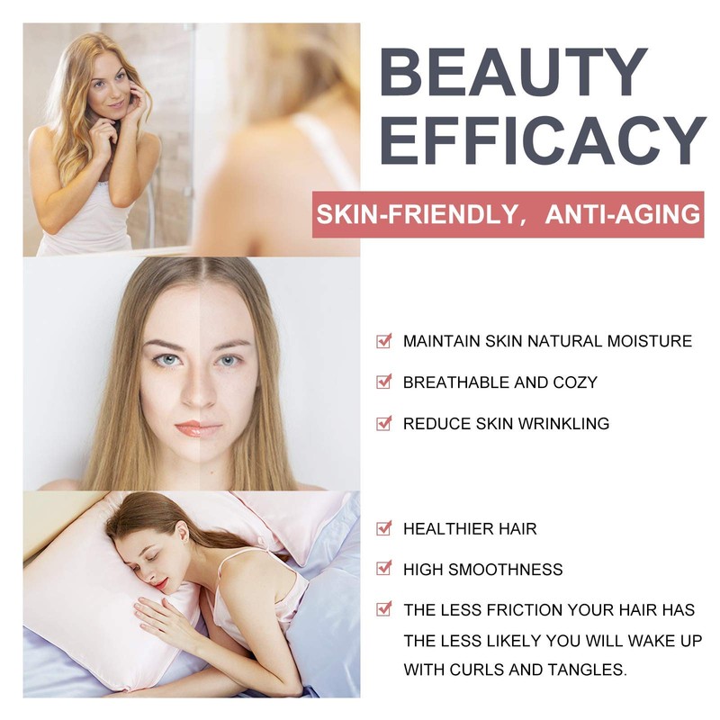 - BEAUTY EFFECT OF SILK PILLOWCASE TEXTURE: Silk pillowcase create a smooth surface for your hair and skin, less friction mean there will be less creases on your skin and less frizz in your hair. It is good for sensitive or acne skin and damaged hair, great for anti-aging