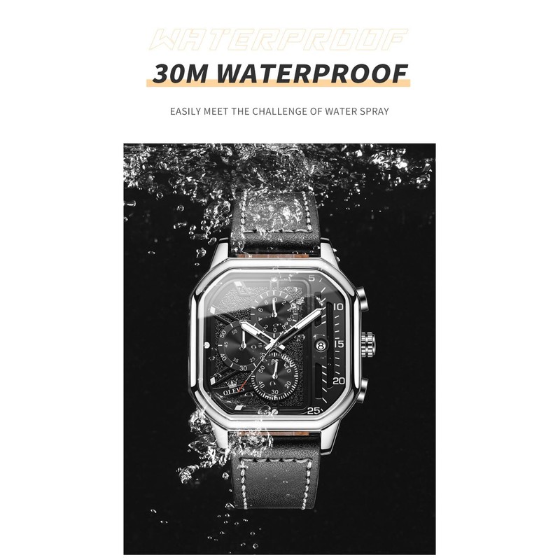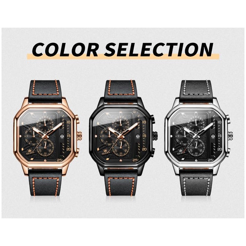 OLEVS Black Leather Watch for Men Square Classic Drees Chronograph Man Watch Silver Analog Quartz Watch Waterproof Luminous Casual Wrist Watch