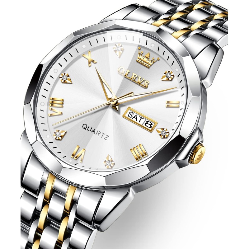 OLEVS Watches for Men Diamond Casual Stainless Steel Luxury Business Dress Classic Date Analog Quartz Wrist Watches Waterproof Luminous