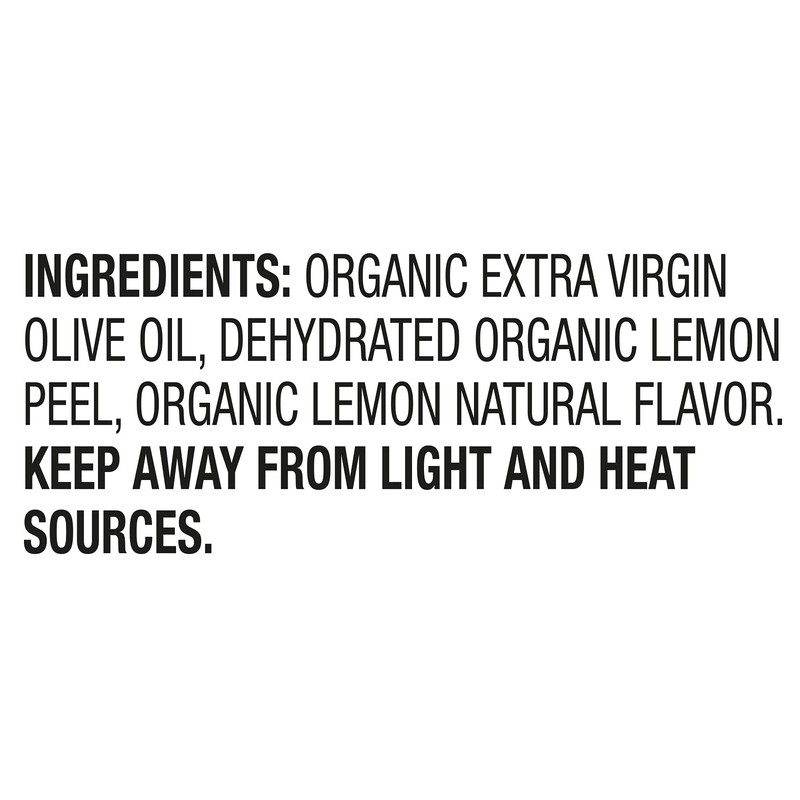 • Delicate, mellow body; infused with fresh lemon that will brighten all kinds of dishes like pasta, pizza, roasted chicken, salads, risotto, bruschetta, and fresh cheeses.